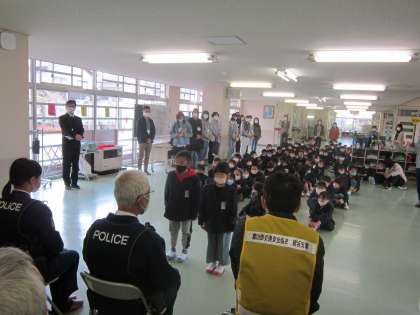 最後に、「飛び出しはしません」「交通ルールを守ります」と代表が宣誓し、安全に歩こうという気持ちを新たにしました。