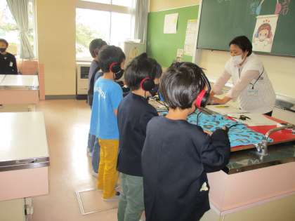 聴力検査をしました。小さい音を真剣に聞き取りました。