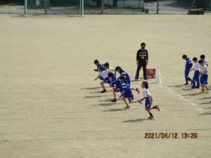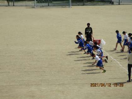 今日は、短距離走に取り組みました。スタートダッシュの練習の様子です。力強い走りです。
