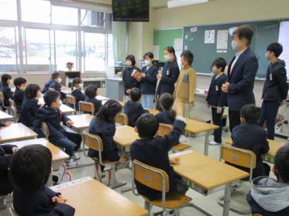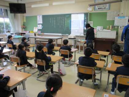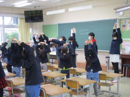 今朝も6年生が各学級に行って、1年生のサポートを行いました。絵本の読み聞かせをしたり、楽しいクイズをしたり、一緒に体操をしたりしました。1年生の笑顔が広がりました。