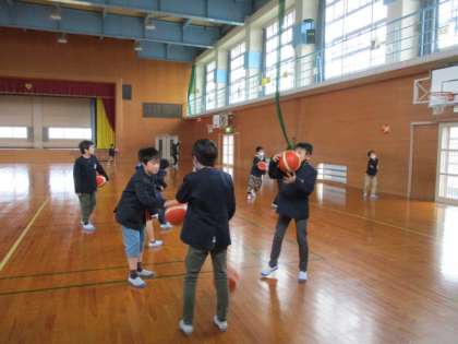 今日は雨のため、リフレッシュタイムに体育館でボール運動に取り組んでいます。