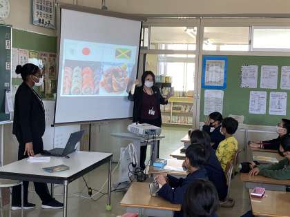 外国語専科やALTとの授業が始まりました。日本とジャマイカを比べてみて、色々な違いがあることに驚いていました。