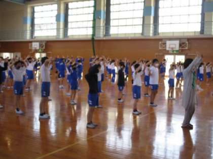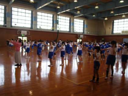 スポーツフェスティバルに向けて、さんさい踊りの先生を招いて練習会を行いました。最初は久しぶりの踊りに戸惑いも見られましたが、アドバイスをもらいながらいきいきと踊ることができました。