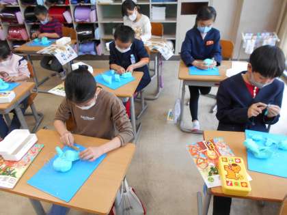 粘土べらや竹串等の用具を使って、細かい部分も真剣につくっています。