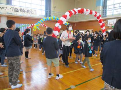 今日は、6年生が1年生の入学を祝う会を行いました。喜んでもらえるようにと練習を重ね、今日の本番を迎えました。