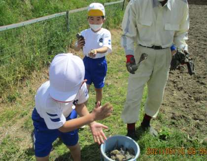 今年も栽培ボランティアの皆さんが、野菜畑を耕したり、畝をつくったりしてくださいました。暑い中、汗びっしょりになって耕耘機を動かしたり、鍬で土を寄せたりしていただき本当にありがとうございました。2年生は、畑に行き、栽培ボランティアさんに挨拶をしてから、小石やごみを拾いました。おいしい野菜ができるのが楽しみです。