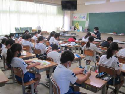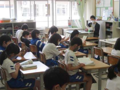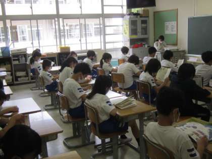 木曜日の1時間目は、全校で10分間の読書タイムです。先生も一緒に読書に親しんでいます。