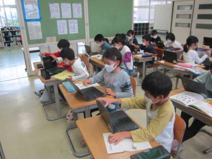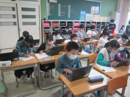 調べ学習でクロムブックを使っています。授業で使う回数も増え、操作にも慣れてきました。