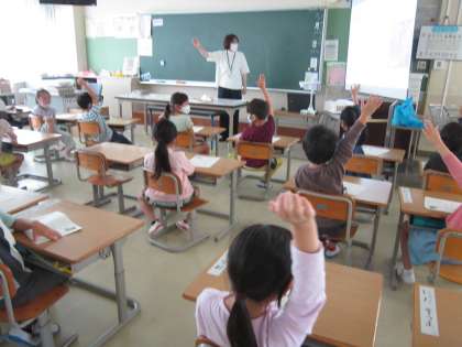 今日は2組と4組が、栄養教諭の話を聞きました。絵やクイズを交えて、給食室や給食のことについて教えてもらいました。子供たちは、クイズに答えながら、楽しく学んでいました。最後には、「いつ献立を考えますか」「どんな仕事をしていますか」など、子供たちからインタビューをすることができました。今日学んだことを忘れずに、おいしく給食をいただいたり、元気に学校生活を送ったりしてほしいと思います。