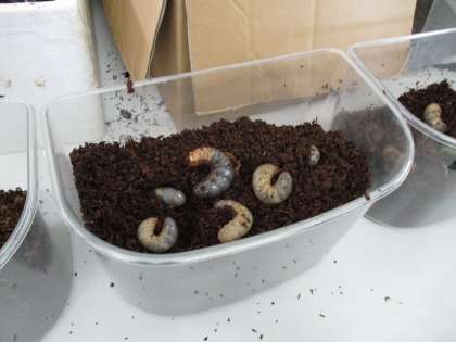地域で自然を守る活動をされている野村さんが、3年生の学習に利用してほしいと、カブトムシの幼虫を持ってきてくださいました。ちょうどリフレッシュタイムの間だったので、子供たちも興味をもって幼虫を見たり、虫かごに移したりしました。成虫になるのが楽しみです。