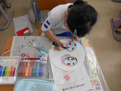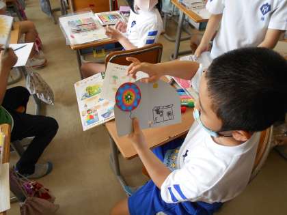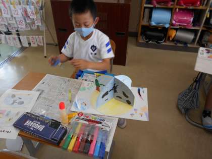 「くるくるランド」の作品を作っています。自分でイメージした場面が、徐々に形になってきました。組み立てながら、回転させる部分を何度も確かめている姿が見られました。どんな作品が完成するのか、楽しみです。