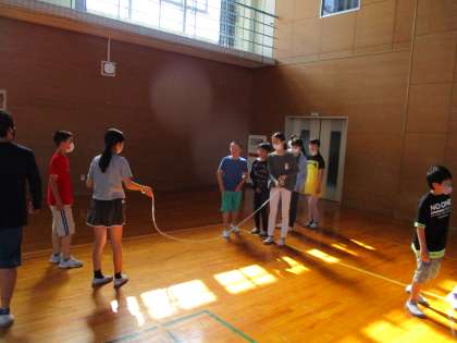 6年生は、朝のトレーニングで長なわ跳びを行っています。たくさんの回数を跳ぶというより、ミスを減らすということを目標に練習をしています。