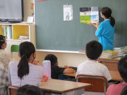 今日は、5年生が読書ボランティアの方に本を読んでいただきました。