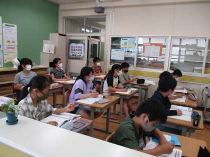 算数科の学習は、少人数で行っています。じっくりと落ち着いて学習に取り組んでいます。