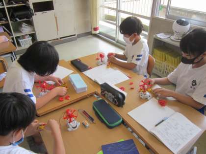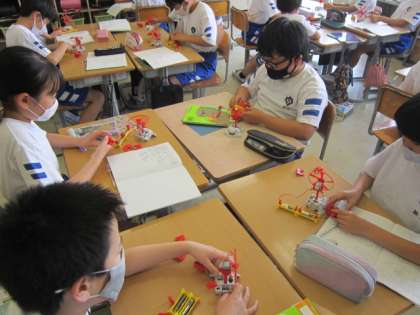 電流のはたらきについて学んでいます。キットを組み立て、プロペラの動く仕組みについて考えました。