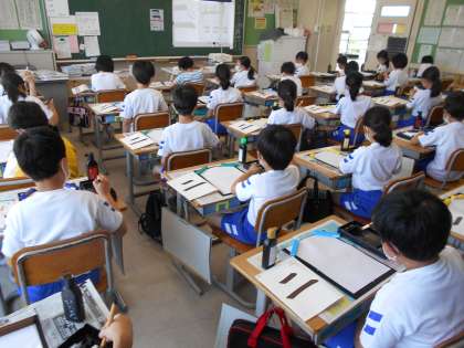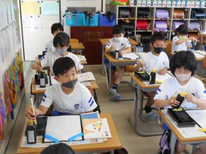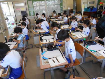 1組では、横画の書き方を練習しました。集中して練習している様子が伝わってきます。