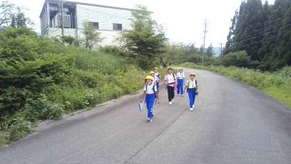 ウォークラリーでは、険しい道を互いに声をかけ合って歩きました。