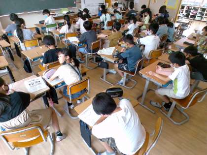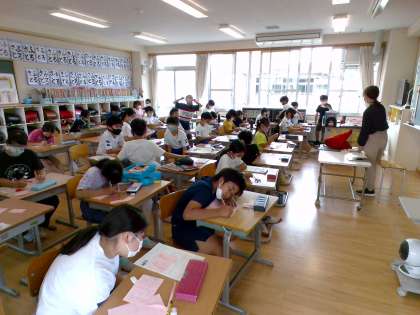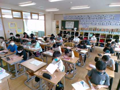 今日は、校外学習を振り返って、班のメンバーや、お世話になった人にメッセージカードを書きました。心を込めてカードを記入する子供たちでした。