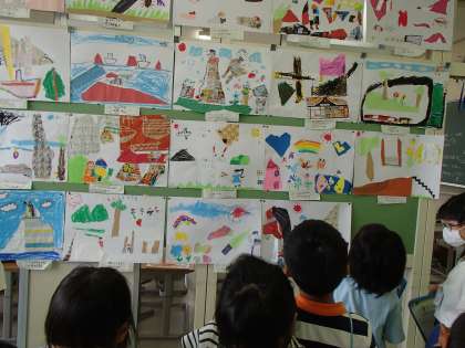 1年生 やぶいたかたちから(友達の作品を見てみよう)