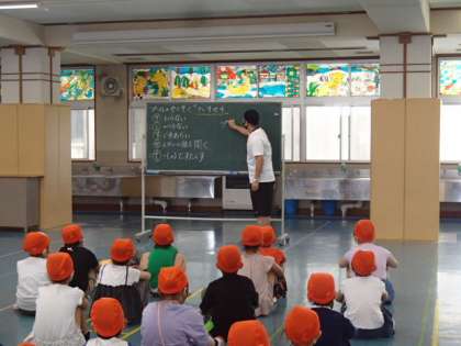 プール開きを行いました。プールでの約束や使い方をしっかりと学びました。小学生になって初めての水泳学習を子供たちは楽しみにしています。今日学んだことを生かし、来週から安全で楽しく活動したいと思います。