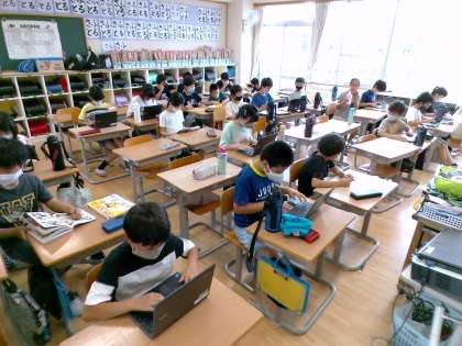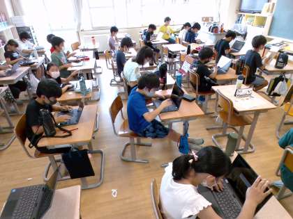 タイピングや計算力の向上を目指している子供たちは、パソコンを使って練習に取り組みました。