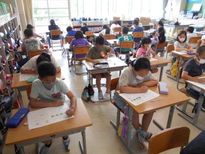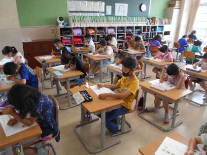 1学期のまとめに入りました。今週は、学習のたしかめのプリントに取り組んでいます。子供たちは、時間いっぱい真剣に問題を解いていました。