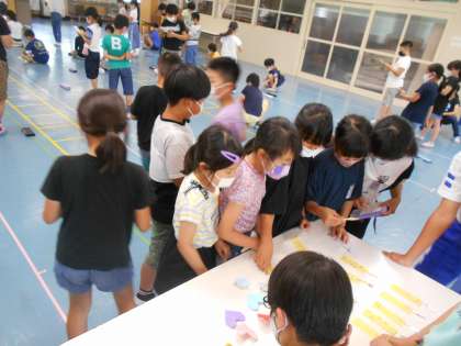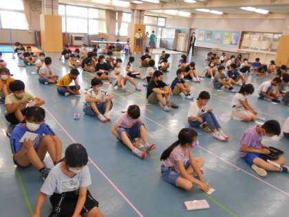 今日は3年2組と5年3組の子供たちが一緒にビンゴゲームを楽しみました。ビンゴの景品や参加賞をもらって喜んでいました。最後は、準備や進行をしてくれた6年生に、お礼の気持ちを伝えることができました。