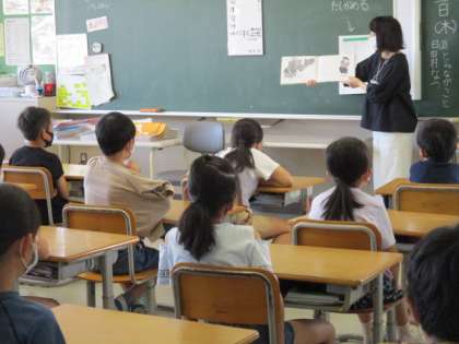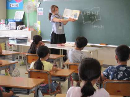 読み聞かせボランティアの方の朗読に、聞きいっている鵜坂っ子たちです。