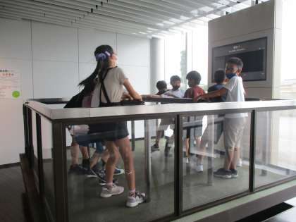 四季防災館では、専用の機械で地震の揺れを体験しました。