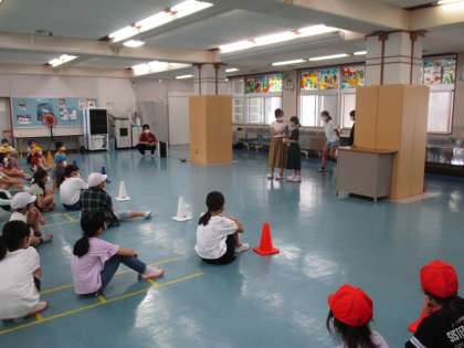 リフレッシュタイムに、6年生主催の、2年生と4年生の交流会がありました。代表の6年生とじゃんけんをし、優勝者はメダルのプレゼントをもらいました。