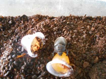 先日のオスのカブトムシに引き続き、メスのカブトムシも成虫になりました。子供たちは、毎朝観察ケースの中をのぞき込んで、成長の様子を観察しています。
