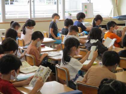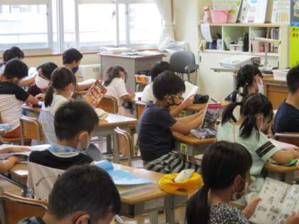 毎週木曜日の1限は、全校読書の時間です。自分で選んだ本を集中して読んでいます。