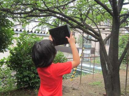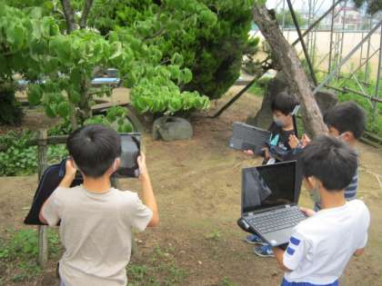 クロムブックで自分で決めた植物を観察しました。春に植えたヘチマもぐんぐん成長しています。