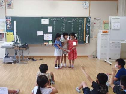 1学期のまとめとして、各クラスで子供たちがお楽しみ会を企画し行いました。この日まで準備してきたクイズやゲームを披露し、楽しい笑い声が聞こえてきました。友達との関わりを今後も大切にし、学校大好きな鵜坂っ子を目指して過ごしていってほしいと思います。