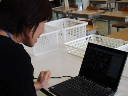 本当ならみんなの元気な顔が教室にそろうはずでした。会いたかったけれど、今はがまんです。そのかわりのミートを行いました。健康観察をしたり、夏休みのことを報告し合ったりして、明るい声を聞くことができて嬉しかったです。