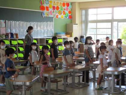 校歌は、校内放送に合わせて口ずさみました。いよいよ2学期のスタートです。