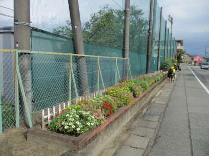 毎朝、花々に見守れながら、鵜坂っ子が登校してきます。