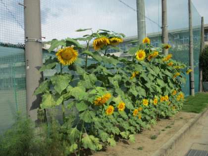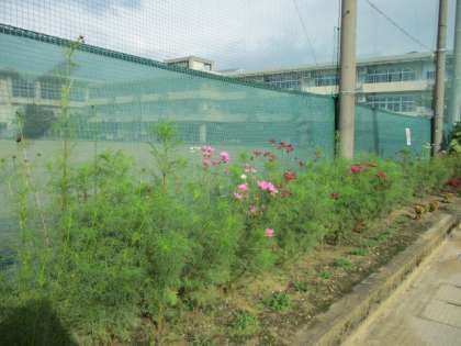 グラウンドの東側のスペースにひまわりやコスモスが生き生きと咲き誇っています。地域の方の温かいご協力のおかげで、フラワーロードになりました。本当にありがとうございます。