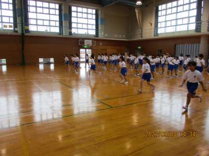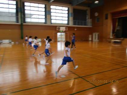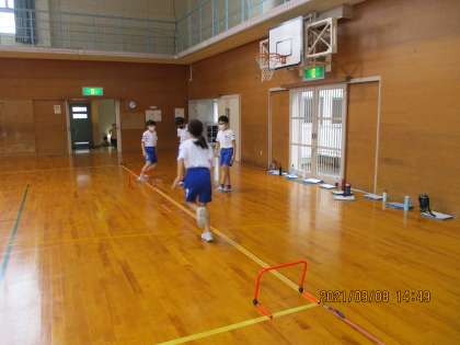 ハードル間を3歩で走る練習をしたり、グループで走りやすいハードルの距離を考えて測ったりました。