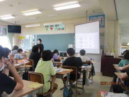 外から吹き込む風が心地よい季節になってきました。子供たちは、しっかりと学習に取り組んでいます。2組は、外国語科の「How was your summer vacation?」の学習で、夏休みの過ごし方を聞き合いました。3組は、学級活動で、「友達のことを思いやり、学級に必要な係活動の内容を考えていこう」とみんなで確認をしました。