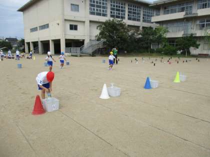 2年生では、スポーツフェスティバルで「満水折り返しリレー」行います。