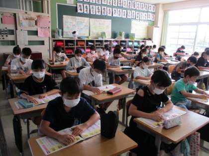 新出漢字の書き順を確認して、練習しています。