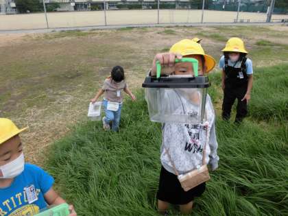 生活科「いきものとなかよし」の学習で、虫探しをしました。バッタやコオロギ、ダンゴムシ等の虫を捕まえたり観察をしたりしました。「ぴょんぴょん跳ぶんだね」「足が6本あったよ」など発見を喜び合いながら楽しんで活動することができました。