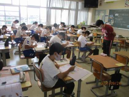 3組は、新出漢字の学習をしました。5組は、大きな地形等のおおよその面積を求めました。どのクラスも意欲的に学習に取り組んでいます。