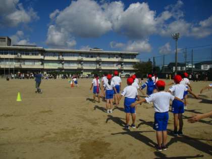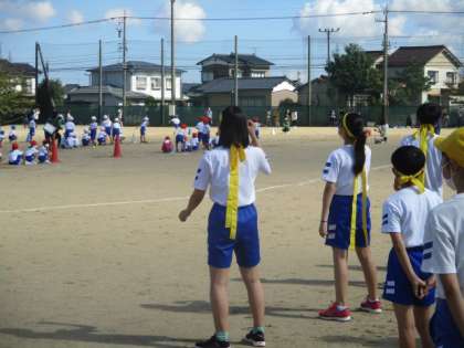 今日は、1年生と3年生のスポーツフェスティバルがあり、6年生はそれぞれの競技中に応援に行きました。