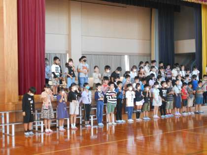 スポーツフェスティバルが無事終了したばかりですが、3年生は26日に学習発表公開を控えています。今日は初めて学年で通し練習を行いました。各クラスで練習していたものをお互いに見合い、「もっと大きな声で言おう」「動きを付けてみよう」等、自分なりに工夫しようと考えていました。