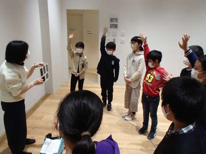担当の方から、作品の説明を受けている子供たちの様子です。
