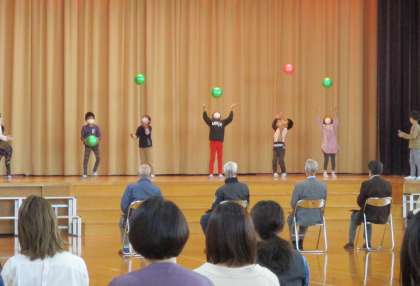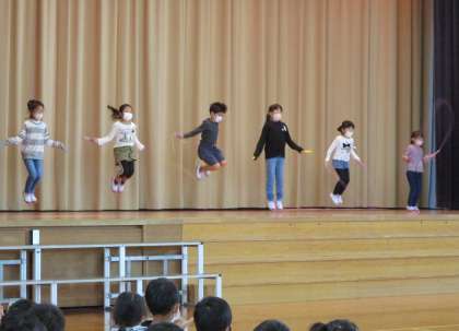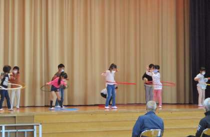 「うんどう げんきにチャレンジ」では、縄跳びやボール投げ、フラフープを披露しました。温かい手拍子、ありがとうございました。
