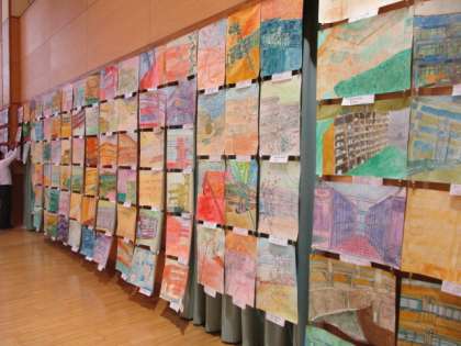 明後日、文化の日には、鵜坂地区センターで、校区文化祭が行われます。地域の方々のお知らせや作品の中に、鵜坂っ子の作品も展示されます。みなさんの描いた校舎もあります。同じ校舎でも色も構図も一人一人違うので、見比べてみるとおもしろいですよ。