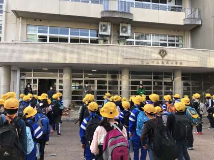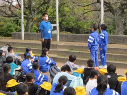 天気に恵まれ、元気に学校を出発しました。入所式では、代表児童が挨拶をしました。いよいよ活動スタートです。
